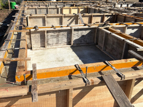 ↑大工工事も進めています。玄関の軒天には杉板を張りました。