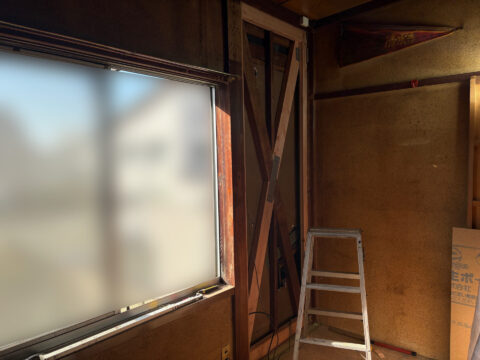 ↑内部の壁の仕上げを解体後、既存の筋交いを確認し、必要な壁倍率になるように補強していきます。