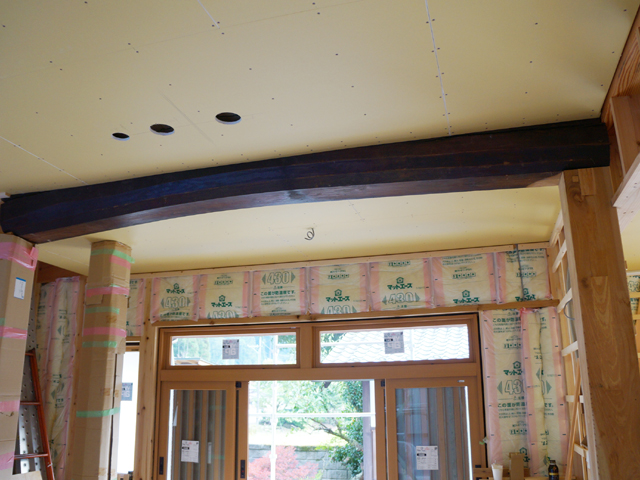 鯖江市 T様邸 内装工事 2014.11.07 家づくり日誌 T様邸の内装工事も順調に進んでいます。 玄関に使用している黒い梁は以前のT様邸で使用していたものです。 下の写真はキッチンのカウンターですが、このカウンター材も以前の住まいのものを再利用しています。 昔の物も加工の仕方、工夫次第で現代の住まいに合う形になるのではないでしょうか。