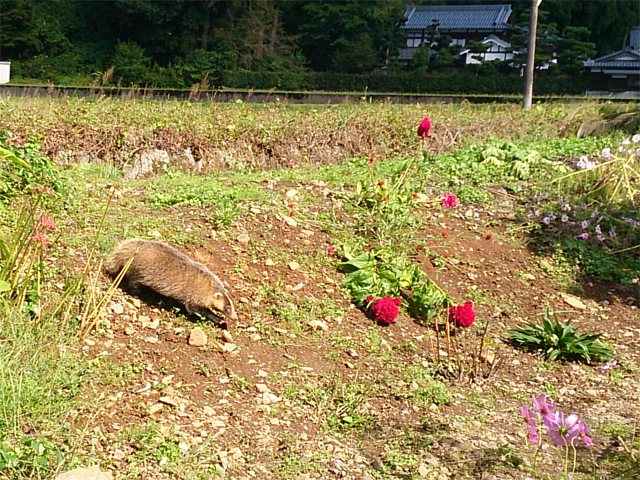 ハクビシン 2014.11.17 家づくり日誌 こんにちは。 少し前になりますが、我が家にハクビシンがやってきました。 昼食が終わって、さあ午後の仕事に!と思っていたら家の裏に居ました。 こちらはびっくりしていたのですが、向こうはあまり怖がっている様子もなく 車の下に隠れたりちょっと移動してみたり。 その様子は何だかノソノソとしていて野生の感じがしなかったです。 その後、インターネットでハクビシンの画像を確認してみたのですが 顔の模様は間違いなくハクビシン。でも何か違う生き物みたい・・・。 私たちが見たハクビシン、とっても肥えていたような。 だからノソノソしていたのかな。 この子です。どうぞご覧ください。