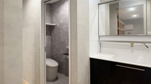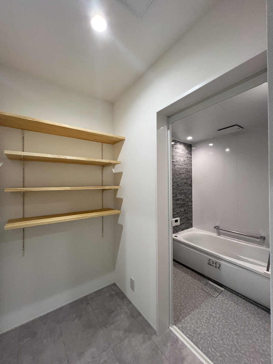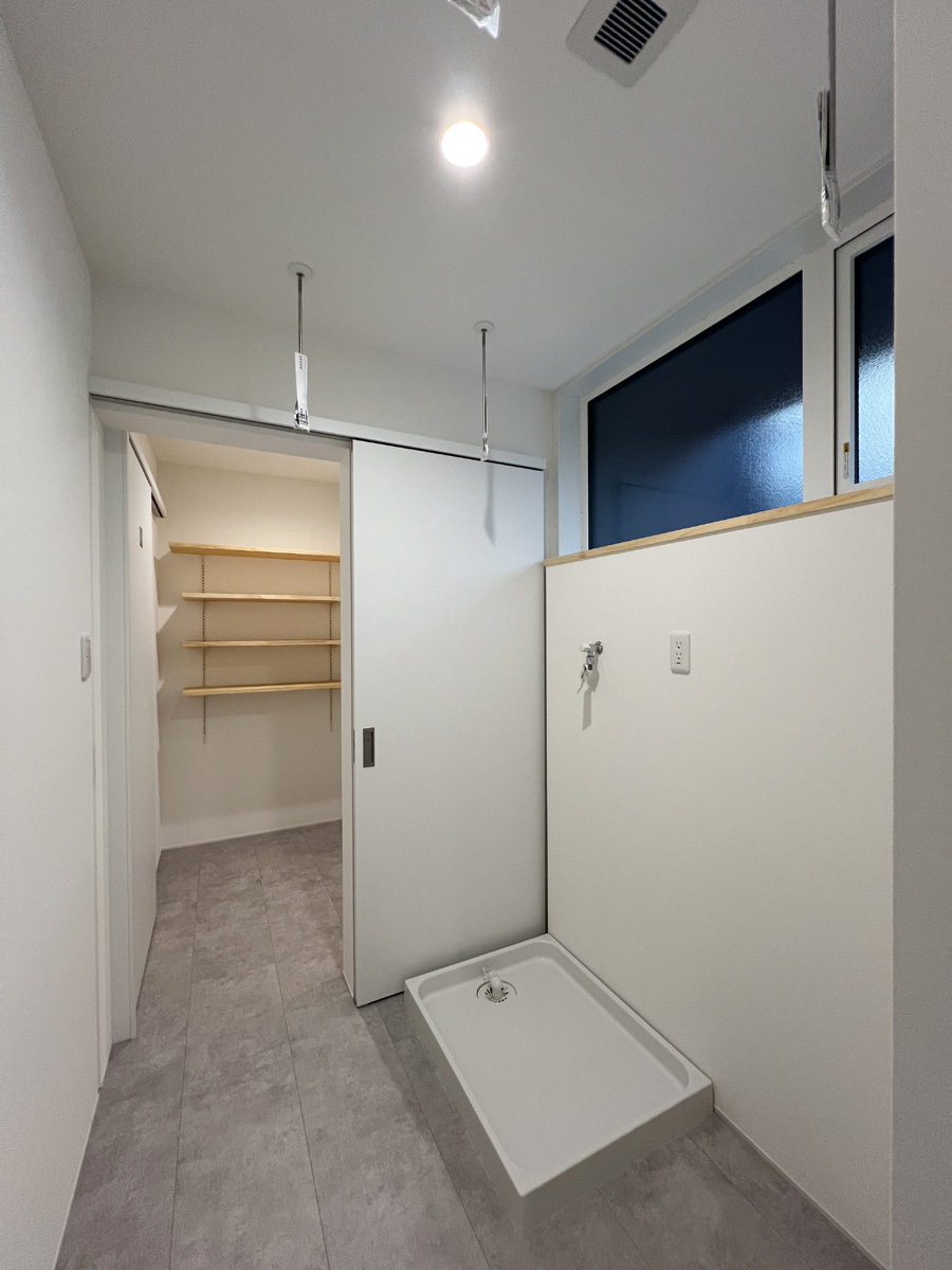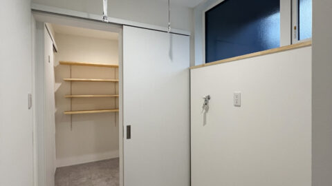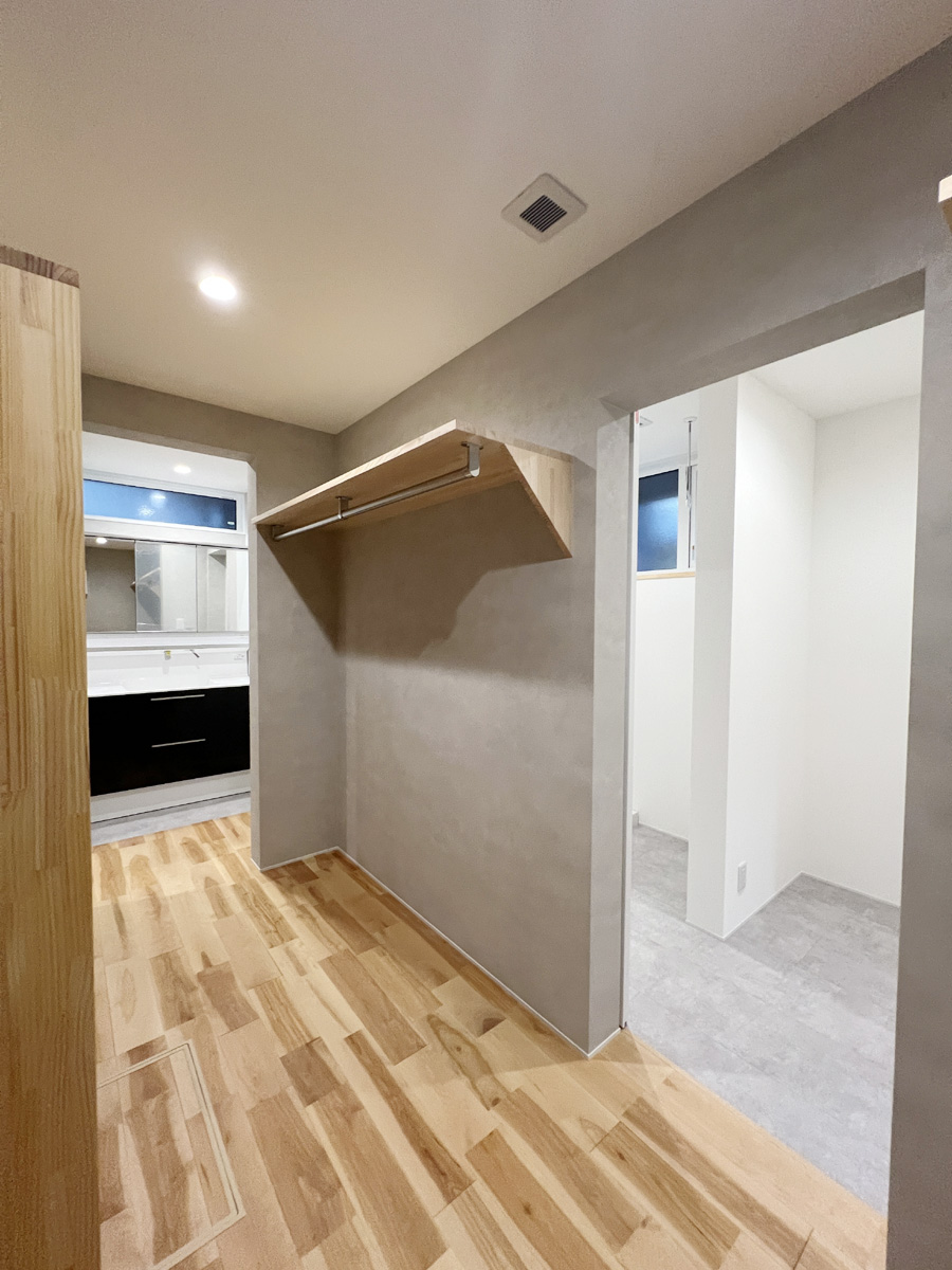 ↑キッチンを中心に、パントリー・洗面・ファミリークロークをぐるりと一周できる動線で設計しているため無駄な歩数を減らし、家事も効率よく行うことができます。